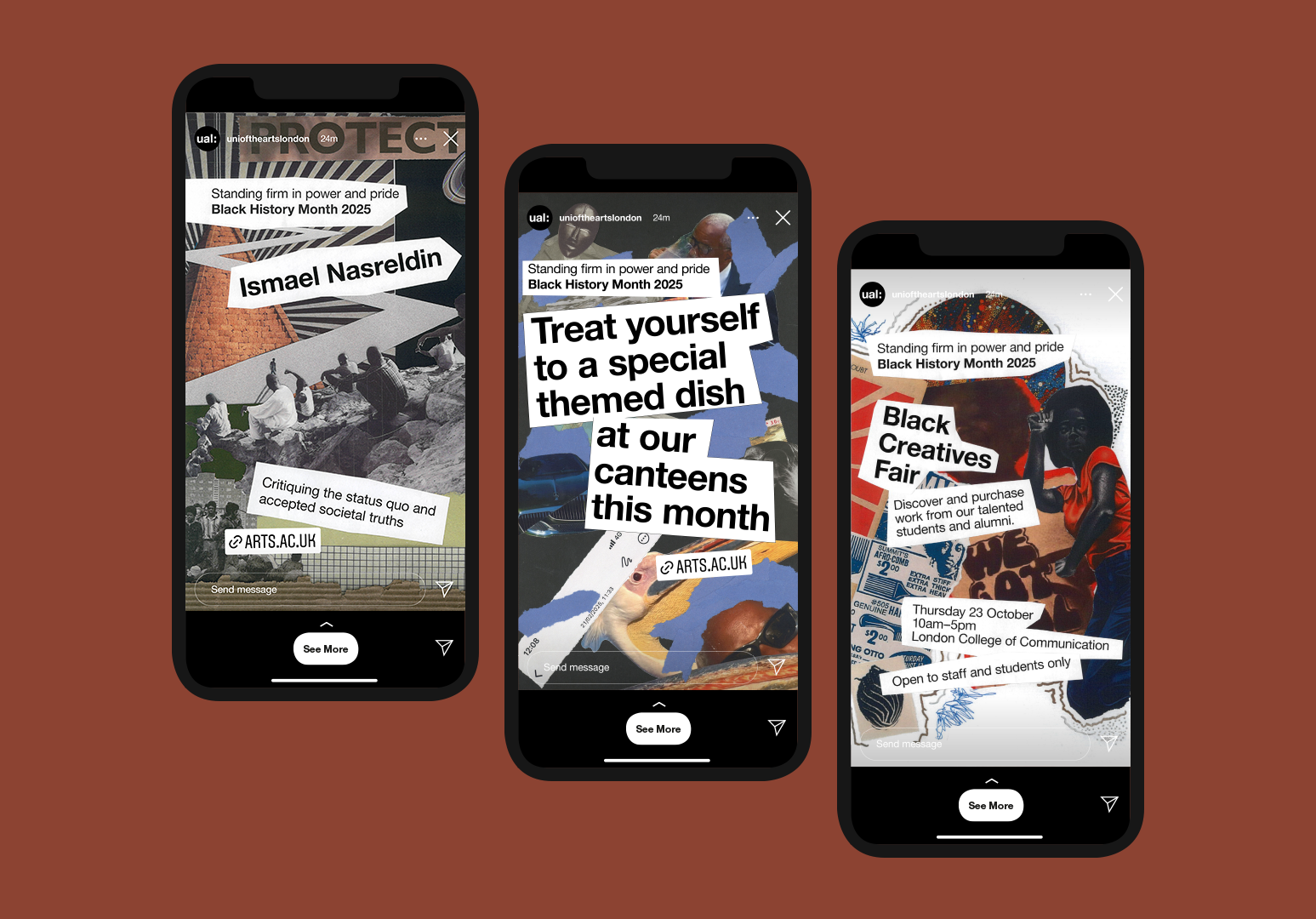 With Bunmi Ekundayo, Lynn Yang and Daniela Di Martino. In collaboration with UAL Communications and collage artists. Campaign live October 2024 and 2025.
